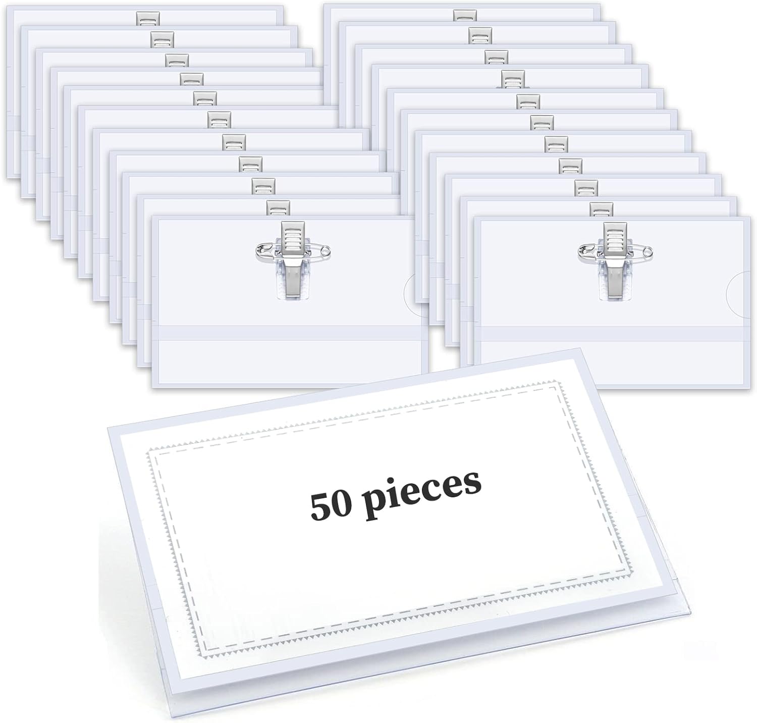 The pin-style blank name badges are made of PVC, durable and long-lasting, transparent on both sides, clear, and easy to identify. wo ways to use, a safety pin and a crocodile clip. You can wear horizontal name badge holders according to your needs.