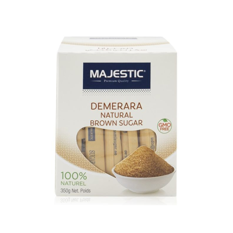 The perfect addition to your pantry - SUGAR MAJESTIC BROWN. 70 convenient tubes of 5 grams each, adding up to 350 grams in one packet. Elevate your recipes with the rich, robust flavor of this premium brown sugar.